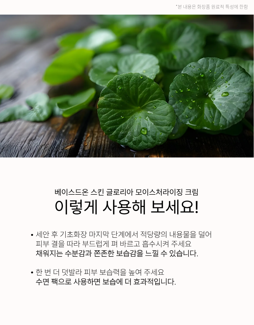 세안 후 적당량을 덜어 피부에 골고루 펴 바른 후 톡톡 두드리며 충분히 흡수시켜 줍니다.