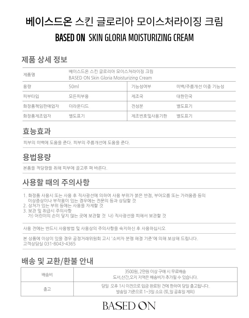 1. 화장품 사용 시 또는 사용 후 직사광선에 의하여 사용부위가 붉은 반점, 부어오름 또는 가려움증 등의 이상 증상이나 부작용이 있는 경우에는 전문의 등과 상담할 것 2. 상처가 있는 부위 등에는 사용을 자제할 것