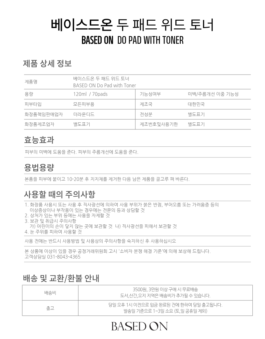본 상품에 이상이 있을 경우 공정거래위원회 고시 '소비자분쟁해결기준'에 의해 보상해 드립니다. 고객상담실 031-8043-4365