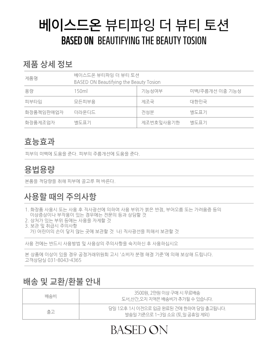 1. 화장품 사용 시 또는 사용 후 직사광선에 의하여 사용부위가 붉은 반점, 부어오름 또는 가려움증 등의 이상 증상이나 부작용이 있는 경우에는 전문의 등과 상담할 것 2. 상처가 있는 부위 등에는 사용을 자제할 것